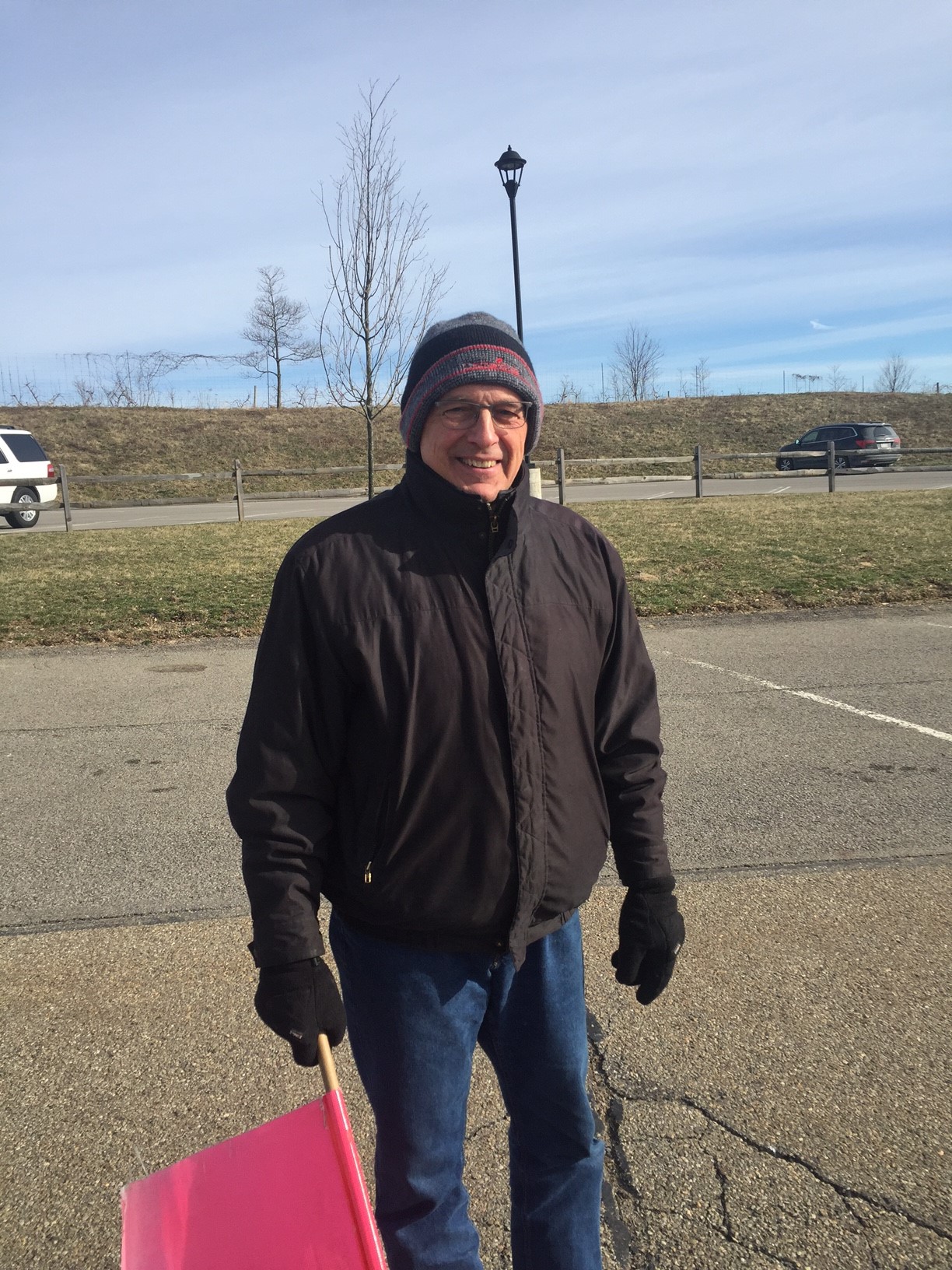 I often shout out when an vehicle is coming in hot. People don’t pay attention when they are late for church and on their cell phones. They come screaming into the lot at warp speed and I shout the warning and jump to get my toes out of the way. Volunteering in the parking lot can be a hazardous occupation. But we love it. Matt keeps us all in line despite vigorous conversations about fantasy football where some folks are left to park on their own if the conversation becomes lively. Cindy Adams has the dubious task of taking care of the parkers with coffee and food on the multiple Christmas services. We also fall under her general guidance- poor girl. Her smile is welcoming as we come in between services to get warm and get a nice hot cup of coffee only to get back at it at the beginning of the next service. I always tell her the worse the weather, the better I like it. I like adverse conditions because I can wear all my foul weather gear including a 40 year old pair of green wool pants that I brought back with me when I worked in Maine. Love the crappy weather, and I always remark to Mike that this is the best volunteer job in the church. I kid him and say, ” When I croak, take my ashes and put them in that orange parking cone to remember me. A part of me will be left in that lot. We get a good laugh about that one.