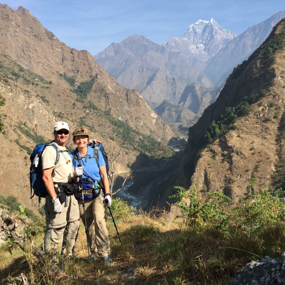 Janet and I went out to dinner the other night with some neighbors who are a little older than we are. They were laughing and joking about some friends of theirs when asked how they were doing? The friends remarked that they were just circling the drain. We all laughed about that visual but in the middle of the night, I took it a little more seriously and thought that I hoped I would never make that statement of being sucked into the vortex of oblivion. I want to be like the spider clawing furiously away from that drain and out of the tub. I try not to think about age but when I do, I make sure I am always taking every opportunity to be active and healthy, and not throwing in the towel. Lots of fun, active times ahead. My friends who are contemporaries feel the same. Take Helen and Eric above. They live in Tahoe and enjoy life in the Sierras. The photo above is from their month long trek in the Himalayas. They ski, hike, trek, and do not circle any drain.
