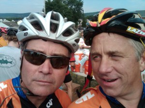 It was my good fortune to have a little bit of the Tour rub off on me those days when I asked Greg numerous questions about the Tour. He said a lot of interesting things like, ” Fignon had the opportunity to use the bars but refused. It cost him 14 seconds and a Tour loss for France.” He also was kind enough to sign autographs for everyone long into the night. His friendly demeanor was impressive and the guy still showed flashes of brilliance on the ride although he was not in great shape due to a massive schedule of charity events and business travel. The three time Tour winner was also kind of a character. Our one friend riding with us kept trying to hammer Greg and near the end, Greg shot off to hide behind a pine tree. Our friend eventually came roaring by on his bike looking for LeMond. As he passed, LeMond came out from behind the tree and laughed with us at the wasted effort of our friend trying to hammer him to the finish. As we finished, our friend looked incredulously at LeMond and asked where he went because he was trying desperately to catch him. LeMond just chuckled and we all had a laugh at that one. The guy could take pictures for miles on end without touching his handlebars and his riding skills were obvious that day.