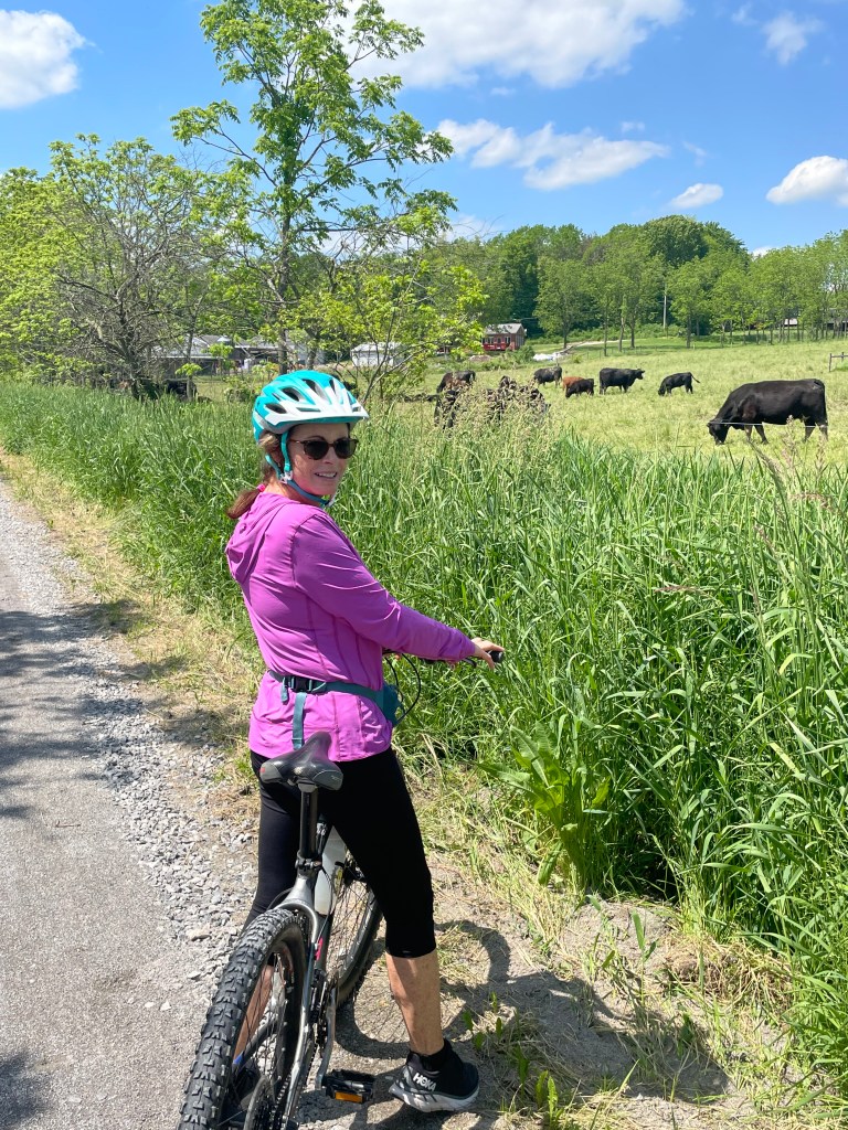 So it’s Memorial Day weekend and Jan says to me, ” I would like to ride my bike.” A little unusual because she does not ride that much but enjoys it when in the mood. I suggested a rails to trails ride and since we were making the effort, why not drive a little bit to maybe one of the more scenic Rails to Trails in our area – the Butler-Freeport Trail. For those of you who are visiting Western Pa. and want a diversion from the really impressive mountain biking in these parts, the Butler Freeport Trail is a relaxing option. As you meander through quiet farmland and along gurgling streams that seem to sparkle in the sunlight, you are amazed at how relaxed it makes you feel. Rails to Trails are basically flat as they follow old railroad lines that have been converted to bike trails.