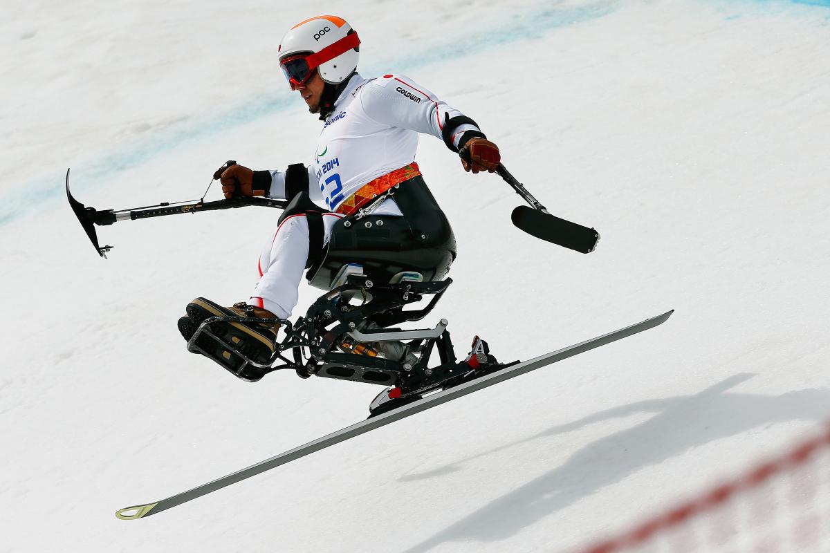 The equipment that was used varied from outrigger ski poles as seen in the photo above to sleds that housed the skier with one ski attached to the bottom of the sled with a motorcycle shock. It was amazing to see these guys ski and also self-load on the chair lift. They needed no assistance as they unlocked the shock, hunched up when the chair came behind them and then attached a safety carabiner and safety cable to the chair lift on the way up. Truthfully, they can ski with anyone and their skill was amazing.