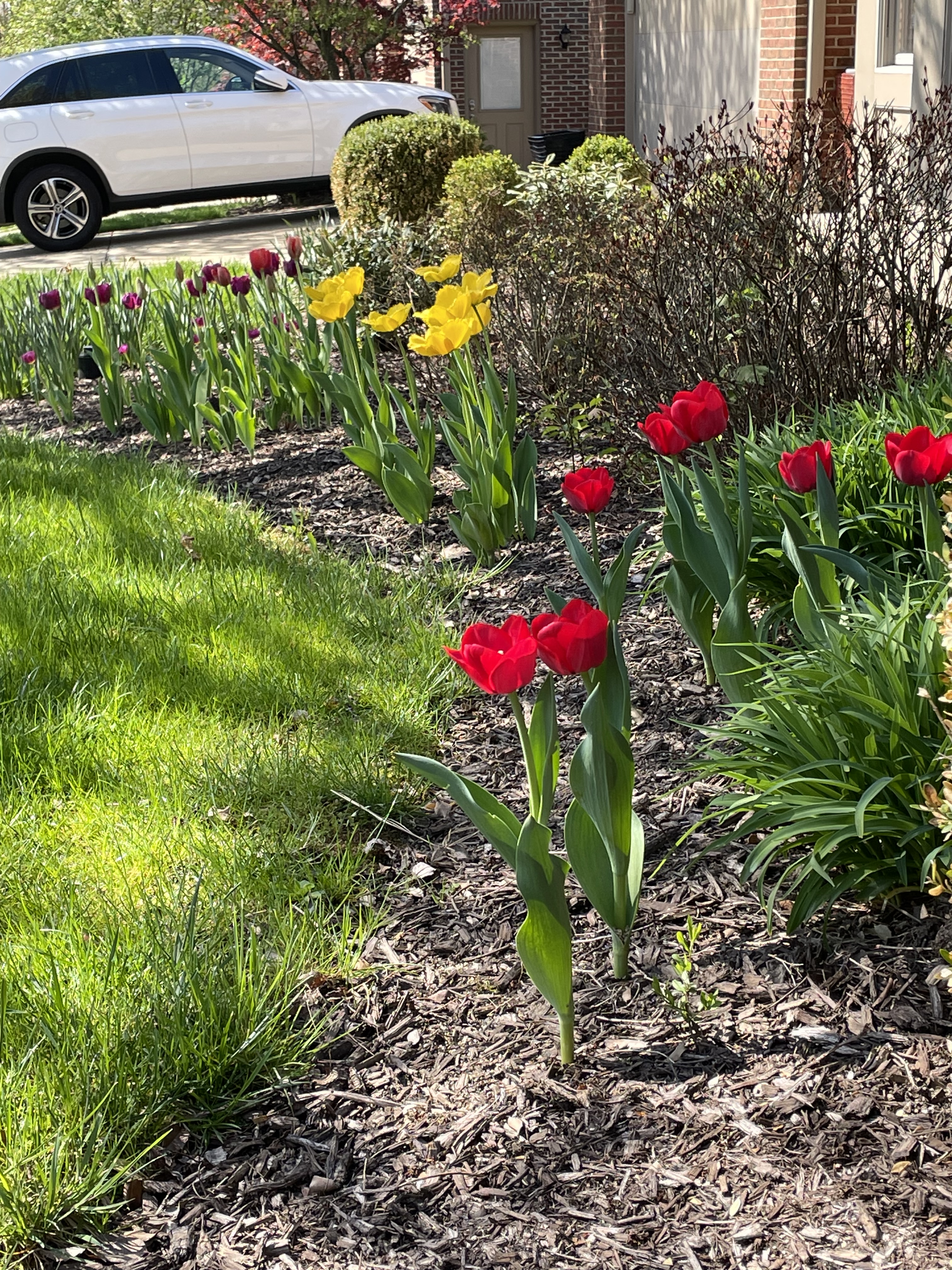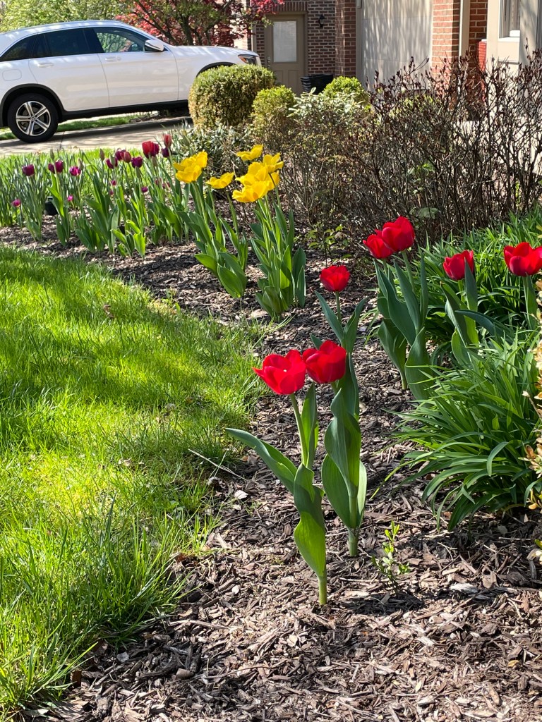 Going back to last spring, Janet and I visited out son Jack up in Michigan, and we went to the Holland, Michigan Tulip Festival. It had quite the Dutch feel to it and I kind of liked the whole thing seeing that back in the day, I rode my road bike through the Netherlands. I liked the windmills and the miles and miles of tulips blooming. It was a cool festival and when we came to a booth selling tulip bulbs, Janet and I jumped at the chance to buy some. The vendors said it would be in the fall before they would be delivered because the bulbs come from the Netherlands. We waited patiently and lo and behold, last October, before the first frost, they came and we planted them in our front yard. I wondered if they would ever come up in the spring.
