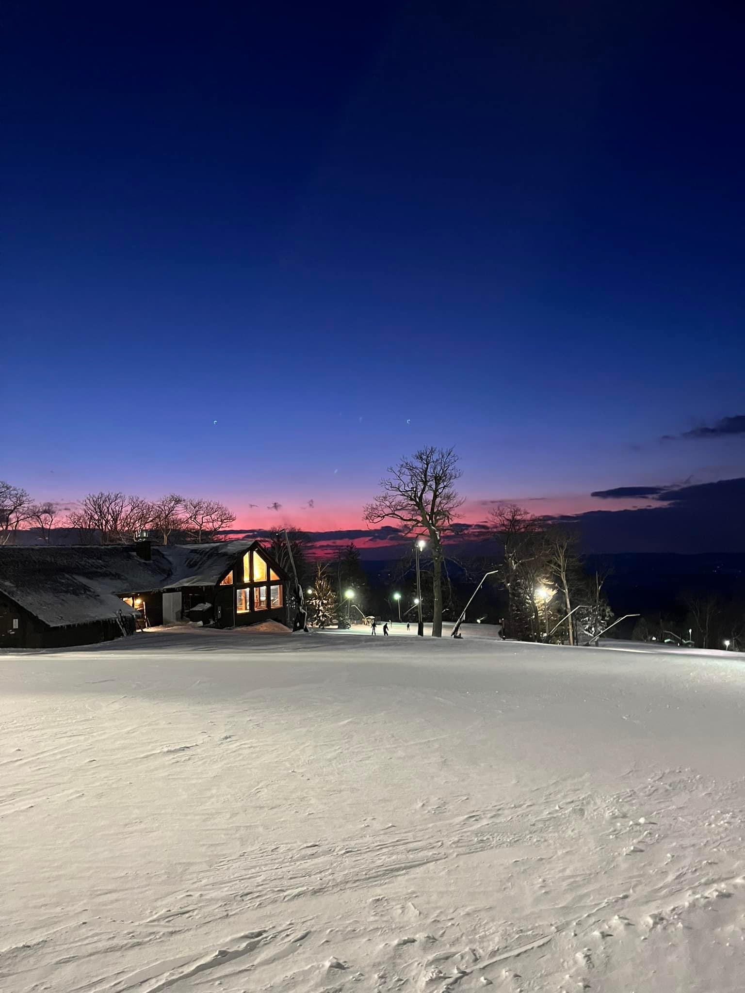 Laurel Mountain Lodge in the evening.