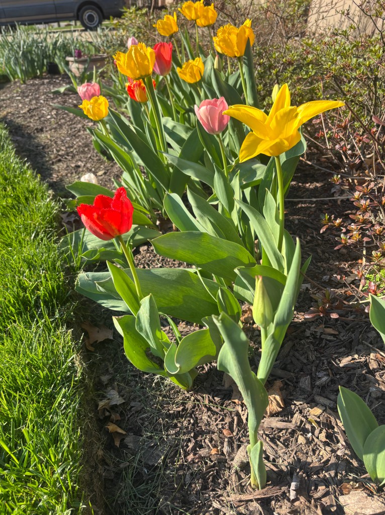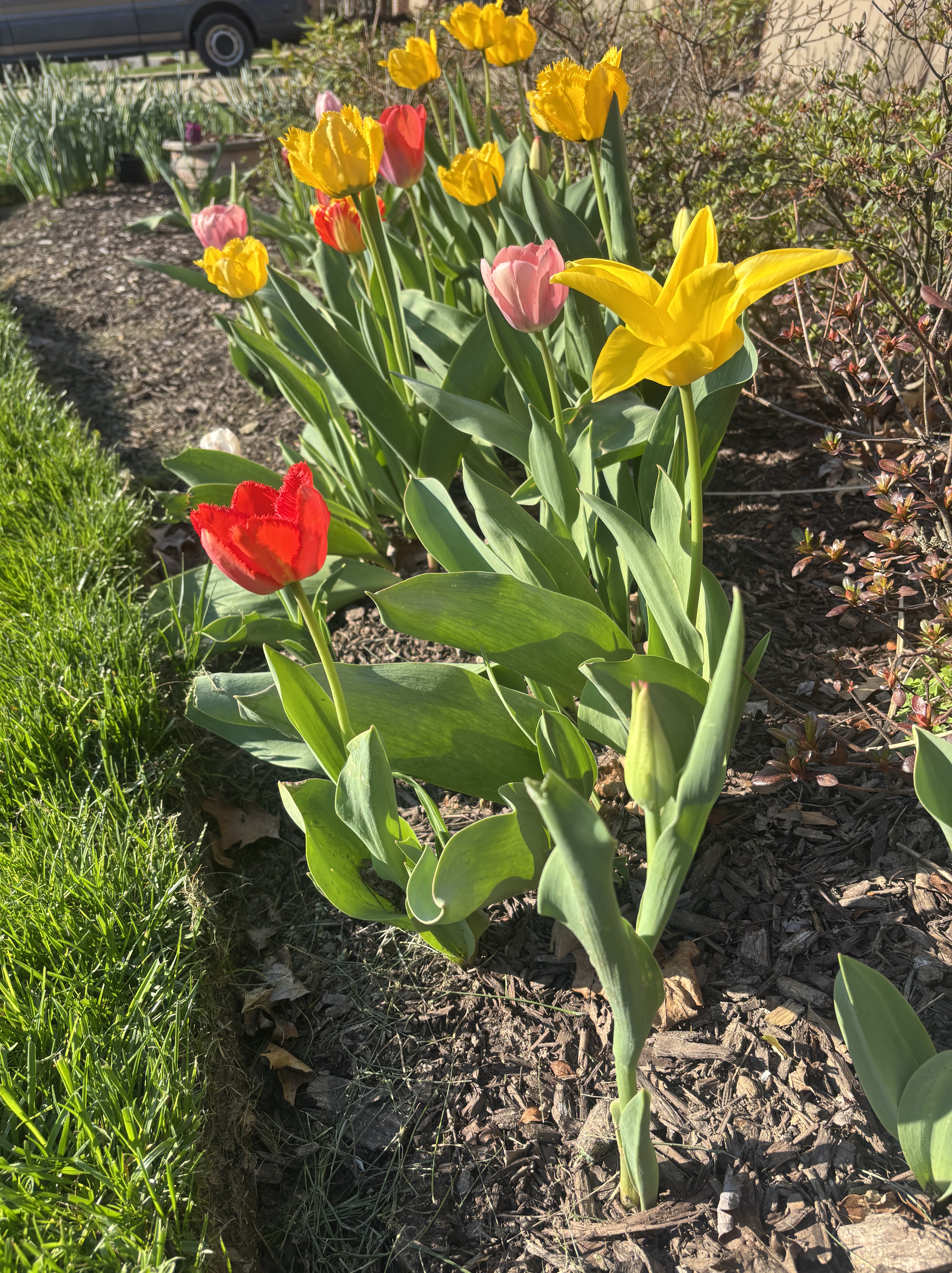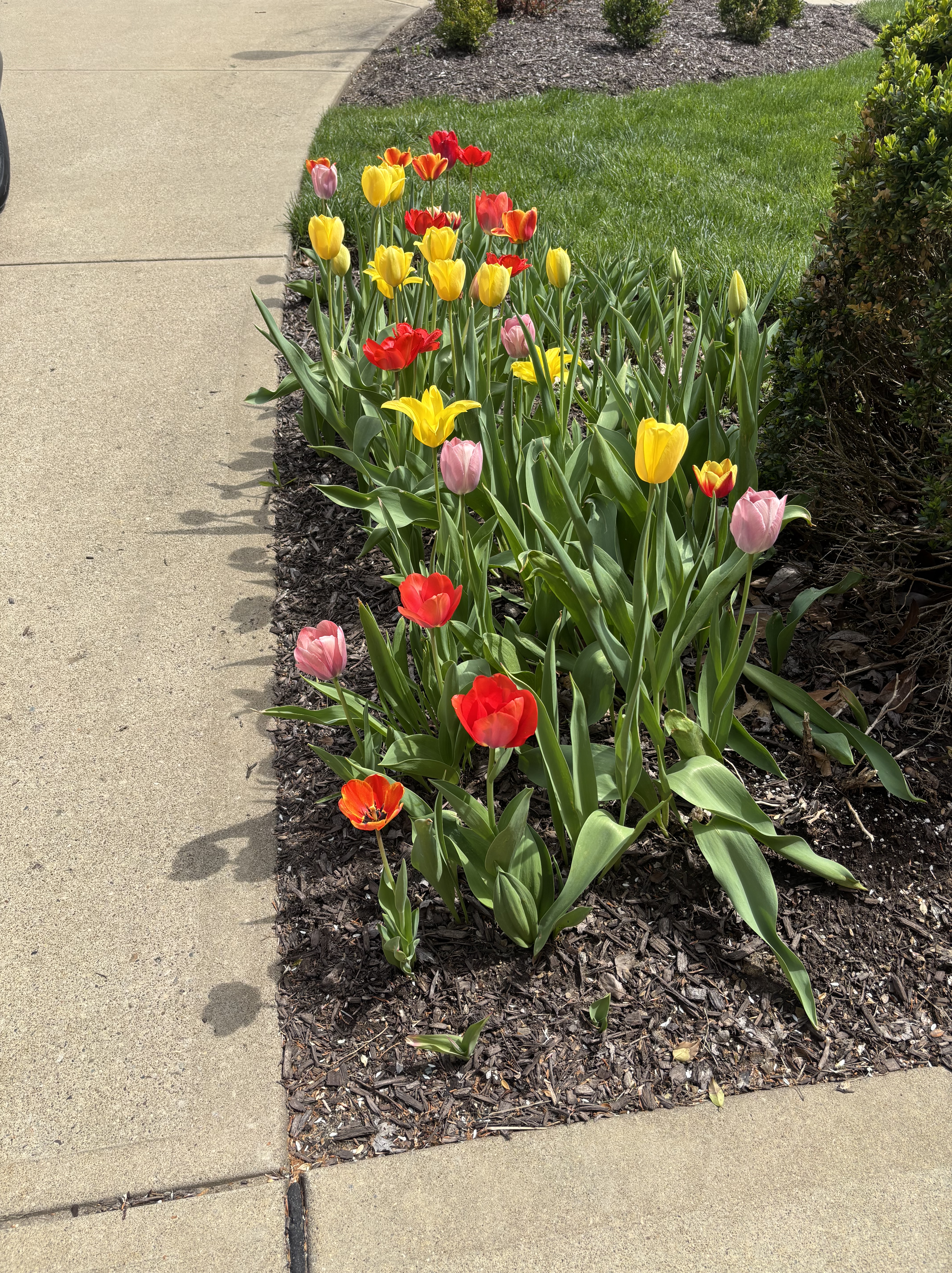 Several years ago, while visiting our son Jack and his girlfriend Marisa ( now fiancee) in Grand Rapids, we attended the Holland Tulip Festival in Holland, Michigan. We enjoyed the nice spring weather and were treated to garden after garden of brightly colored tulips in full bloom at this time of year. We made a stop at the Holland Bulb Farms ( hollandbulbfarms.com) booth and I made a purchase of some bulbs to plant in the fall for the next spring. Ever since then, it has been a tradition for me to buy the bulbs in the spring from Holland Bulb Farms and eagerly await their shipment to me in the late summer. I plant them before the first frost and they are ready to go when the sun starts to warm the soil in early spring.