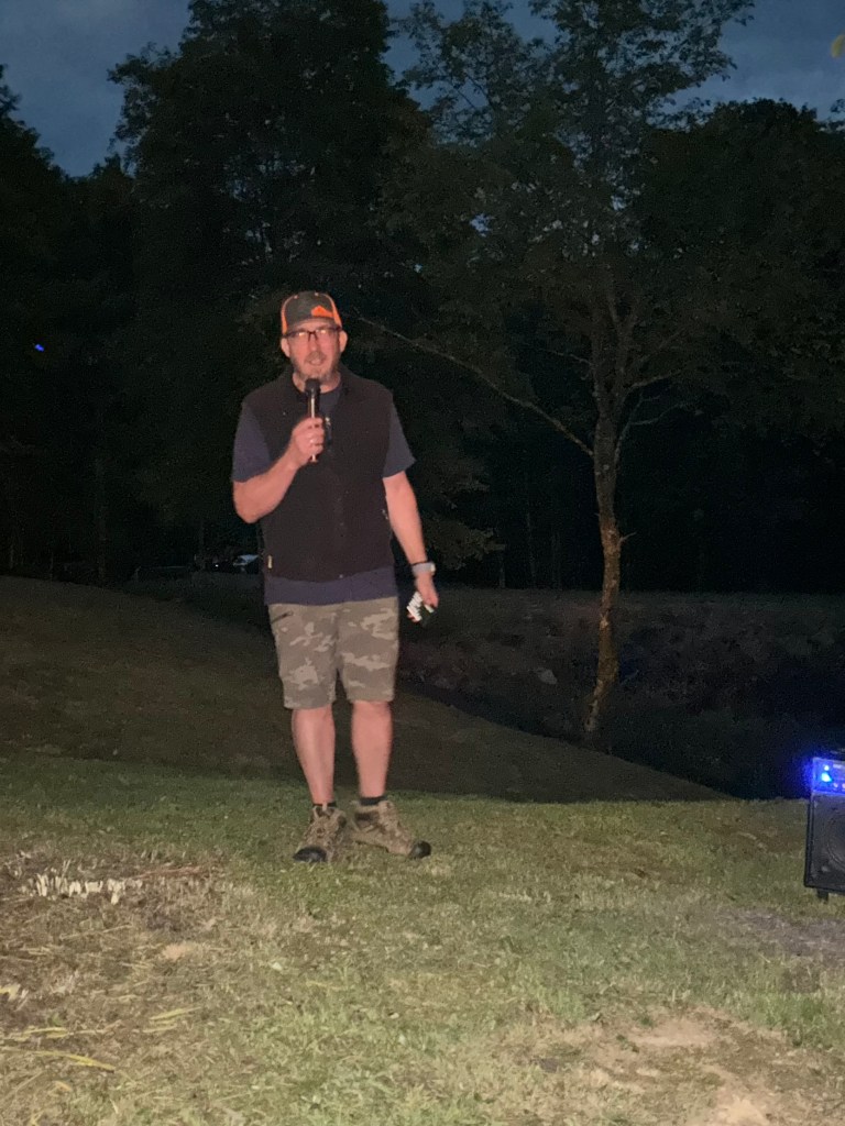 After a quick shower and jamming a few PB&Js down our throats, we made our way to the main event. First on deck was Steve McGranahan who bills himself as the ” World’s Strongest Redneck.” As the crowd of Adventuremen sat in disbelief in their camp chairs, Steve showed us his strength and skill by tearing phone books in half, decks of cards in half, bending nails, and bending a frying pan into a tube that he billed as the first redneck hot dog cooker. We could not believe some of the stuff he showed us like taking a bite out of a soda can. His humor was apparent but he had a definite message for the group. As he was tearing the phone books and decks of cards, he said, don’t let anyone tear you apart, or tear you down. He said we have a faithful savior who will prevent that if we only give him a chance. He said, as he bent the frying pan and the nails, not to bend our will to anything that would be a dishonor to our faith. In short, he had a message for us with every feat of strength that he showed us. The guys were inspired and in awe all at the same time.