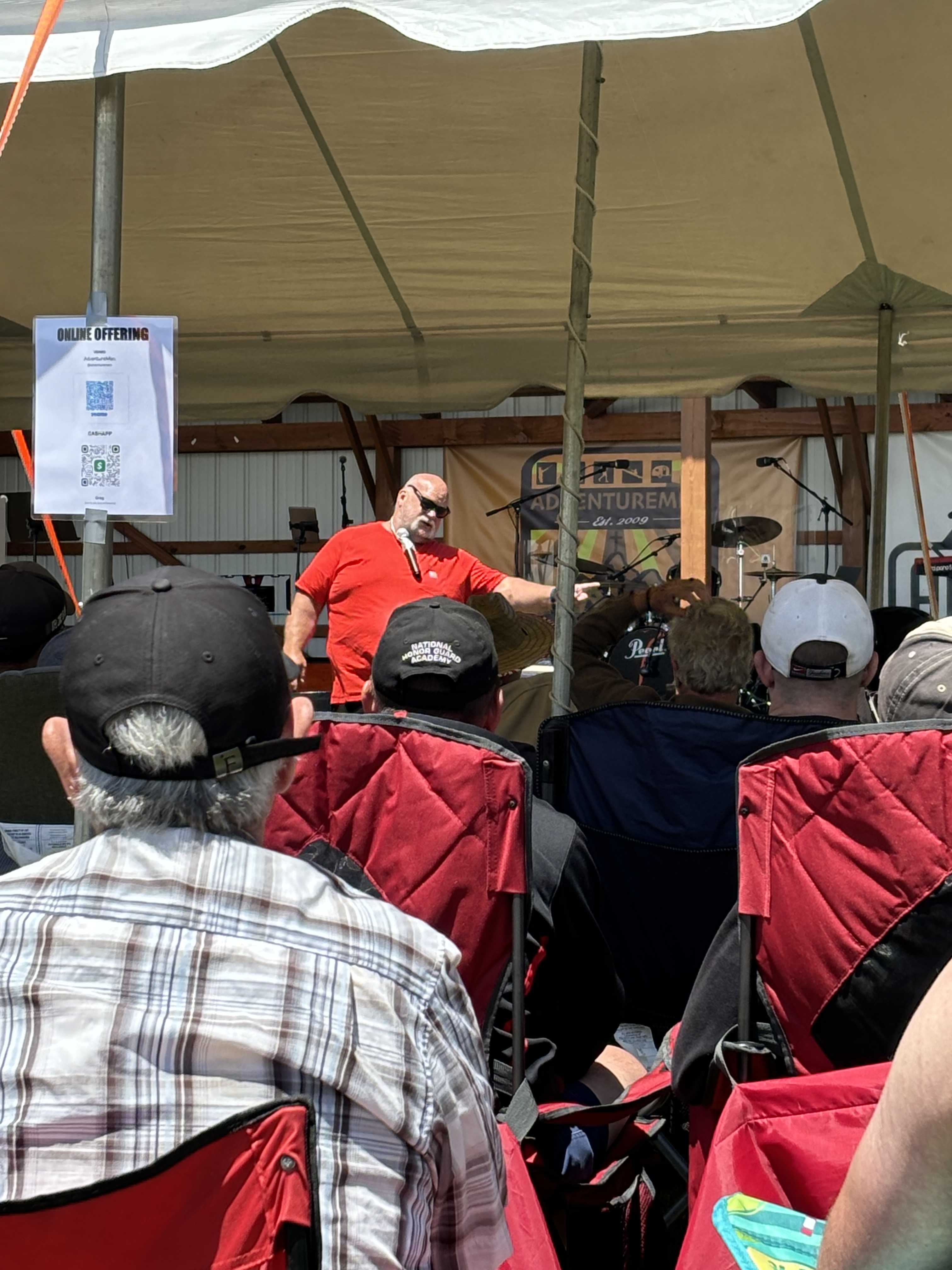 Pastor Greg with his opening remarks. The guy is a tireless worker. The new Adventuremen cross that will be permanently installed in the camp ground.