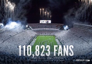 If you have ever experienced a “white out” it is a most intimidating sight for the opposing team but the zeal of 110,000+ people chanting “we are” stirs the collective soul of everyone who calls himself or herself a Nittany Lion.