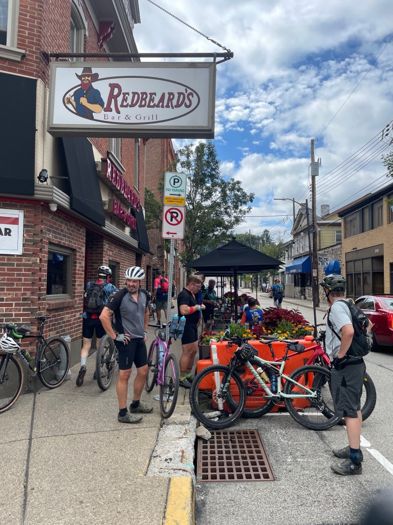 Many people don’t realize that you can take singletrack trails all the way from the Southside up to the top of Mt. Washington. These lead to the Emerald Trails which yielded some really nice views of the city, but things get tight and technical real fast. And they are off camber making you pay close attention so as not to plummet over the hillside. All of this is rewarded with a lunch at Redbeard’s which is an annual affair. Sitting outside, both groups gather together for a quick lunch before hammering the Emerald Trails back down to the Southside and once again out to Oakland to complete the route through Frick, Schenley, and Highland parks. Frick Park has some technical riding and again, a mountain bike is preferred.