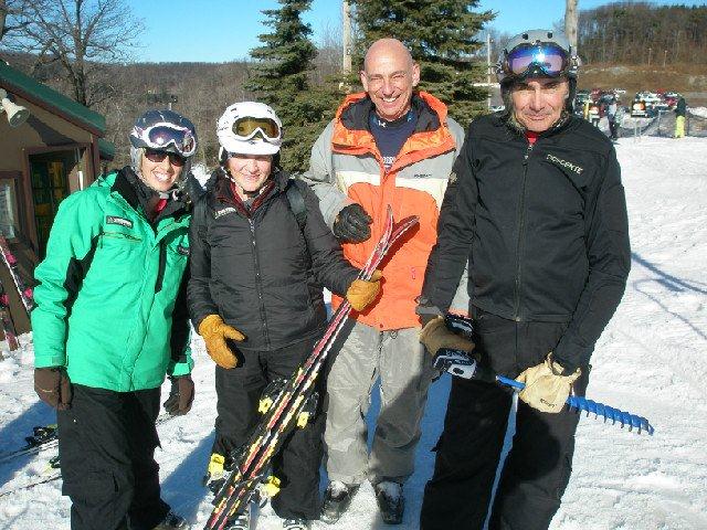 Personally, I am a lifetime member of the organization seeing that I have passed my 40 year mark as a fully certified Level III instructor. Although I do not teach anymore, I still like to see what is happening in ski instruction and Angelo’s invitation was a welcome chance for me to sit in on a clinic that Kathy organized. You can instantly tell how competent a skier is by the shape of their turns, their balance and edging skills. As I followed Kathy during the clinic, I was impressed at how comfortable she was on skis in any conditions and how I could learn something from her. We had numerous discussions on the chairlift and when we had a chance to follow each other, she had some pertinent commentary on my skiing which I will work on this season. I told her I have been watching the World Cup and was anxious to activate my inside knee more during the execution of a ski turn. Gold Medalist Debbie Armstrong refers to it as “driving the inside knee” but my friend Mark Hutchinson, former race coach at Stowe, says differently. He says at our age we aren’t driving anything. We are putting our body position and our knee position in place to succeed. Our ski race knee driving days are over. LOL!!! Kathy understood and helped me understand that as a taller skier, it was important to create those edge angles. She showed us some drills where we could instantly see that if our upper and lower body were not truly separated( a flaw to many taller skiers), we would compromise our turns for success. I learn something new every year and breaking some age old habits is tough. But after 60 years of sliding on snow, there are still things to learn and I am not too far gone to try to keep up with the modern technique.