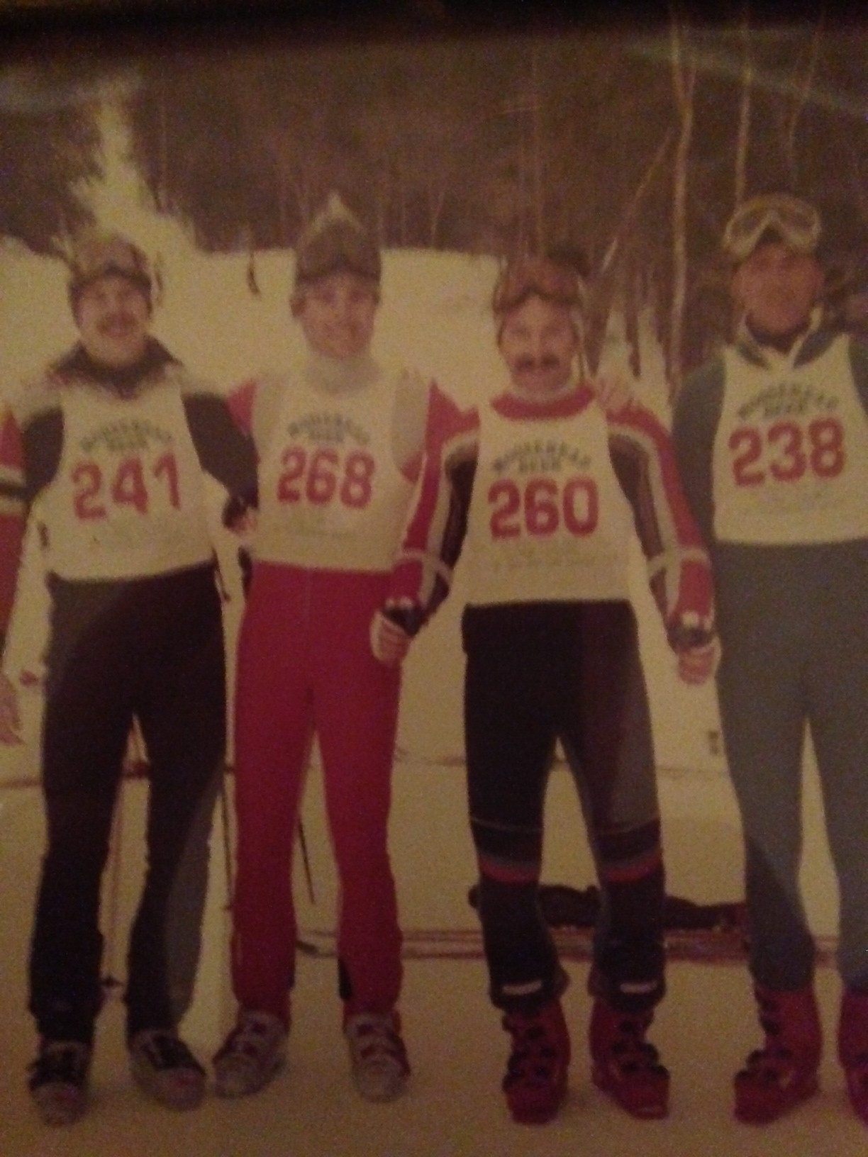 The years have gone by but a lot of the guys who I still ski with at Seven Springs still have their pins. Porter, Jamie Edson, and me. Porter and Jamie proudly wear theirs in remembrance of an era gone by. NASTAR had taken over the citizen race arena with a much more sophisticated national ranking system and national championship. But the old Standard Race was a free form flyer that we all loved, and no matter what improvement we made with equipment upgrades, the prestige of that pin was something that is still remembered to this day. The Standard Race is a memory for all of us growing up at the last resort. So, Greg, Melissa, Jaime, Heidi, all the Dupre girls, Johnny Fraser, Johnny McCarthy, Andy, Richard Nicolette, the Rose clan ,the Edsons, Dixon, and the Siegle clan, ………….dig out those “7”s and wear them with pride. You cut the corner, you survived the races, and you got your pins. Thanks for reading and enjoy the winter.